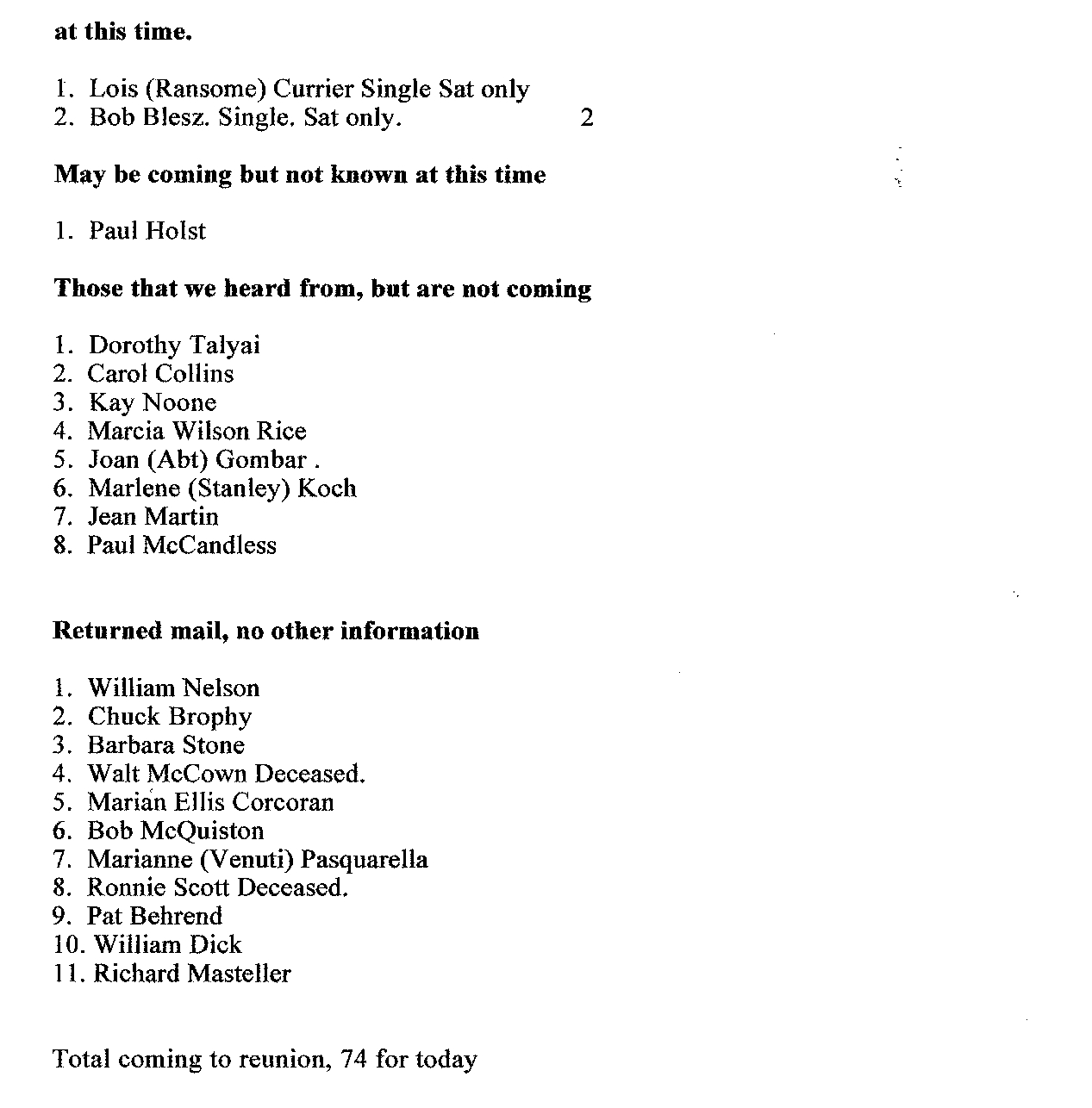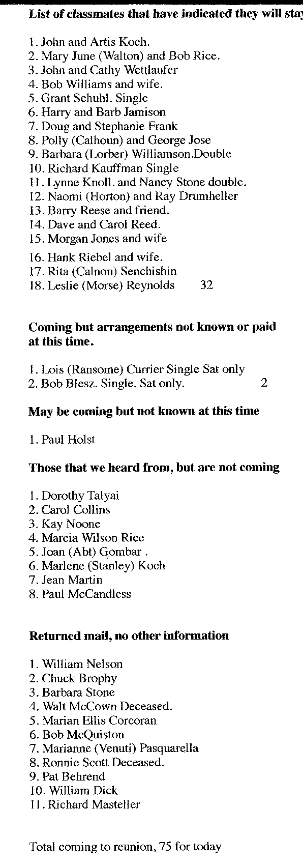 Total coming to the reunion, 75 for today