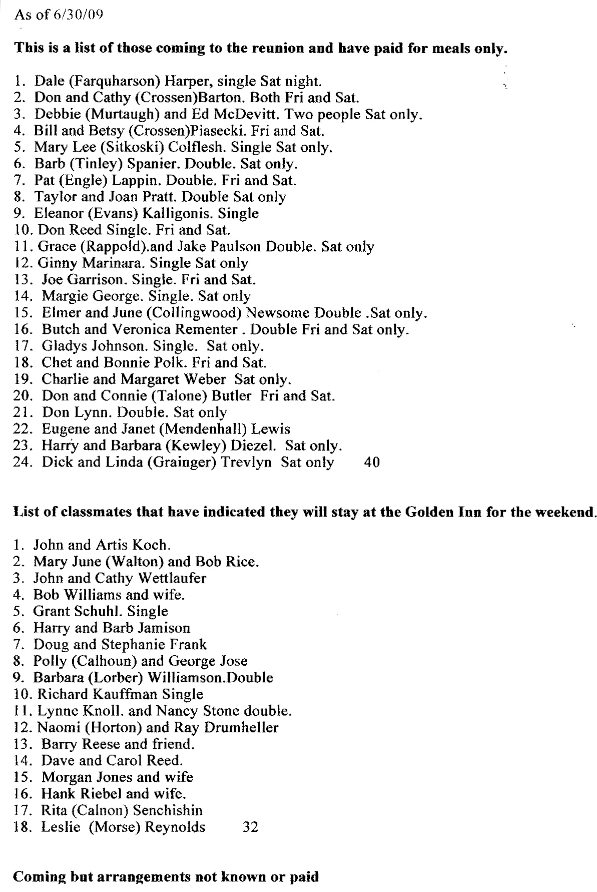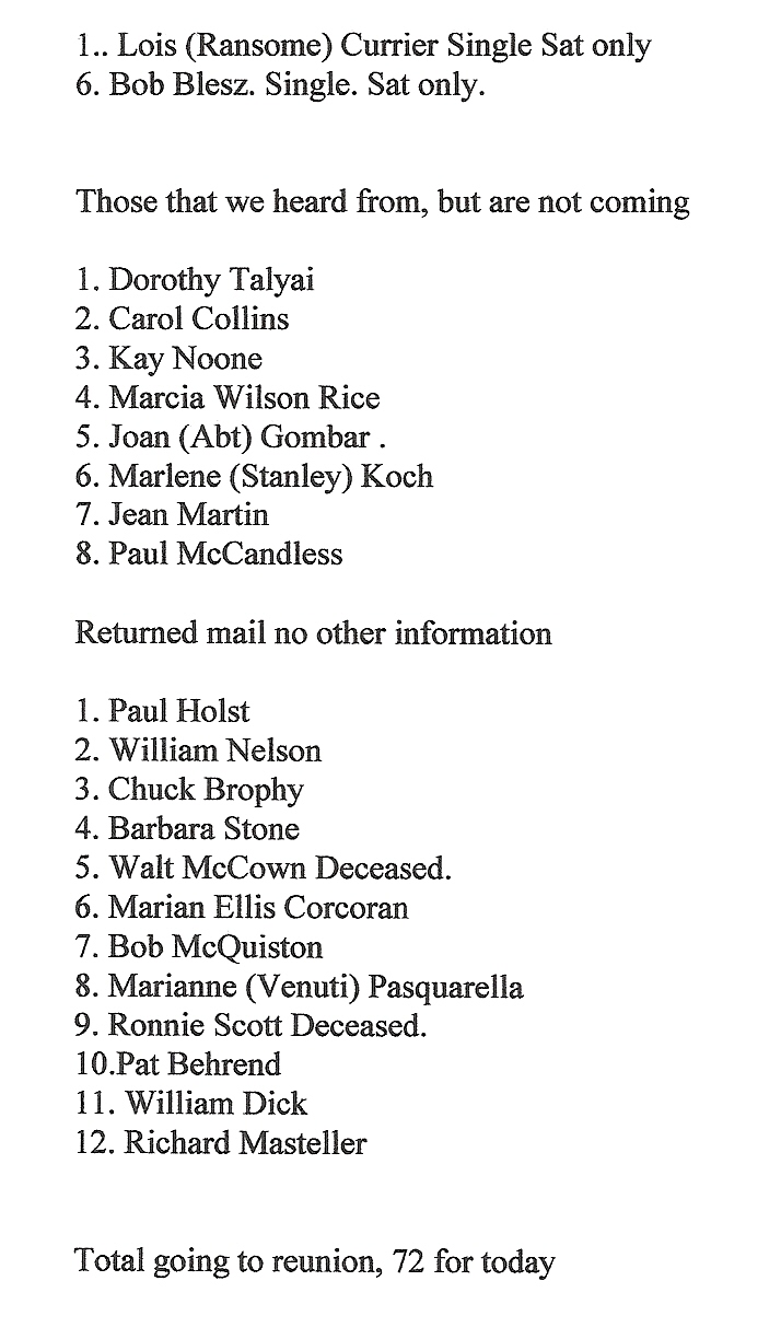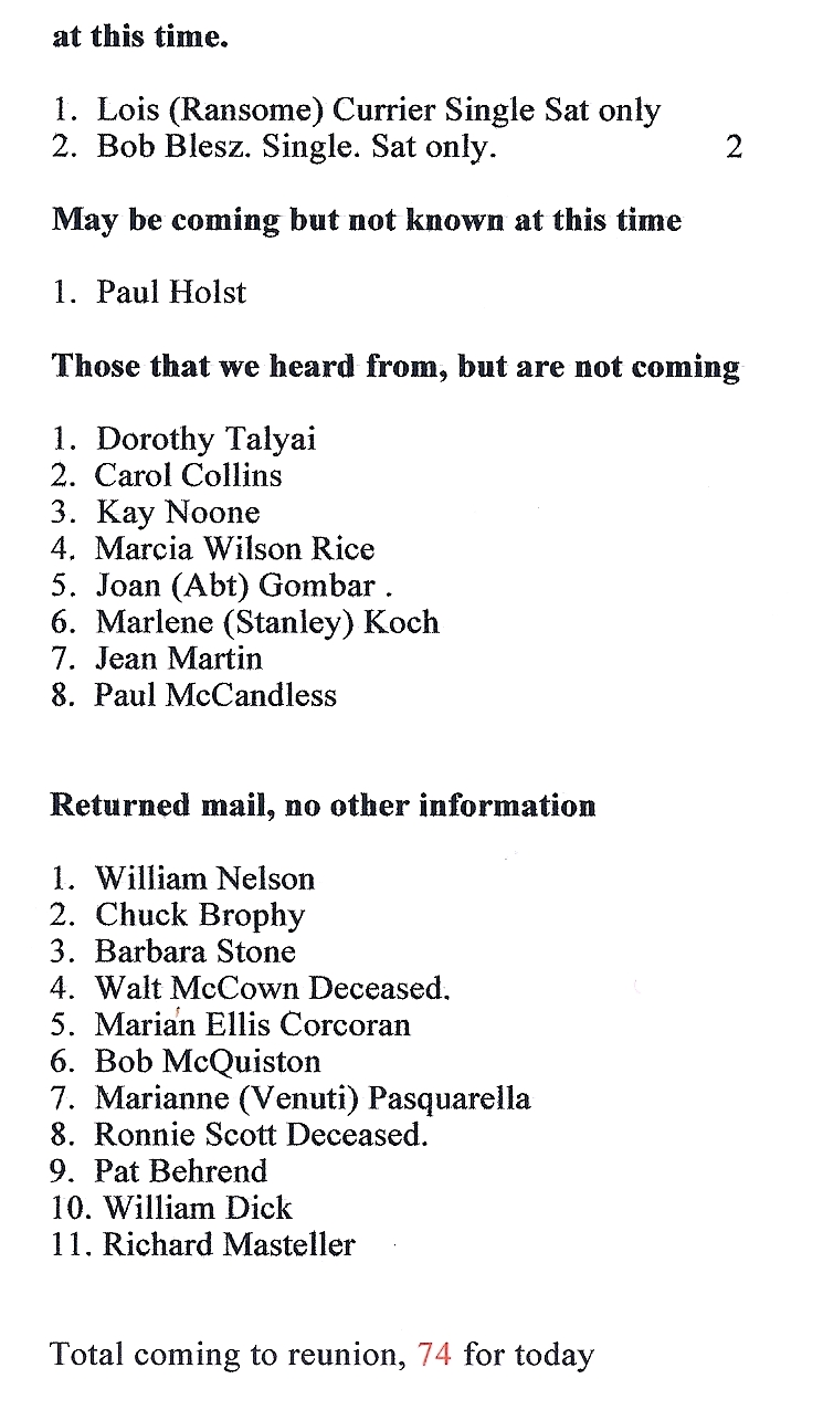 Total coming to the reunion, 75 for today