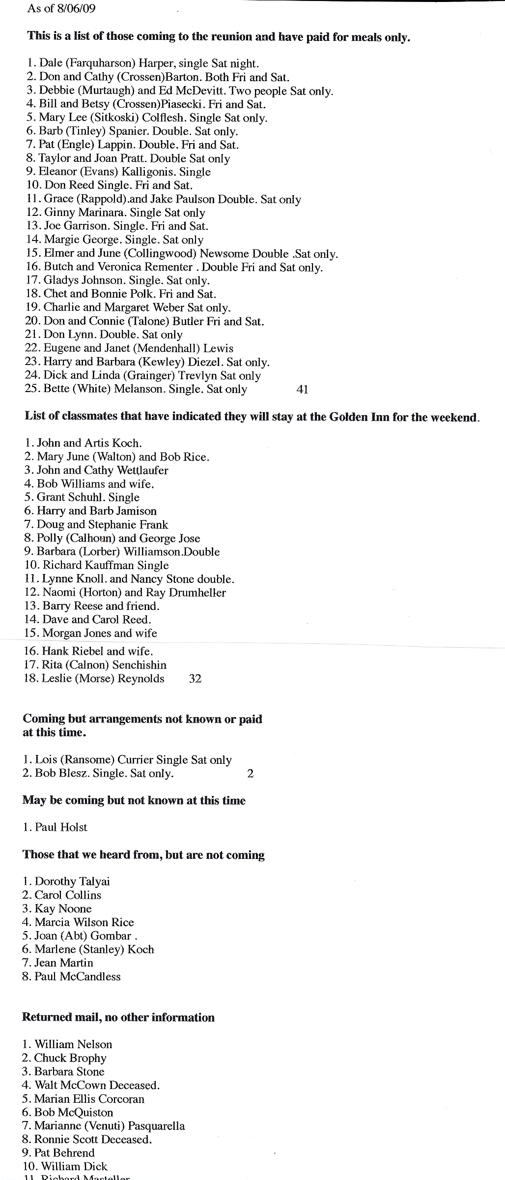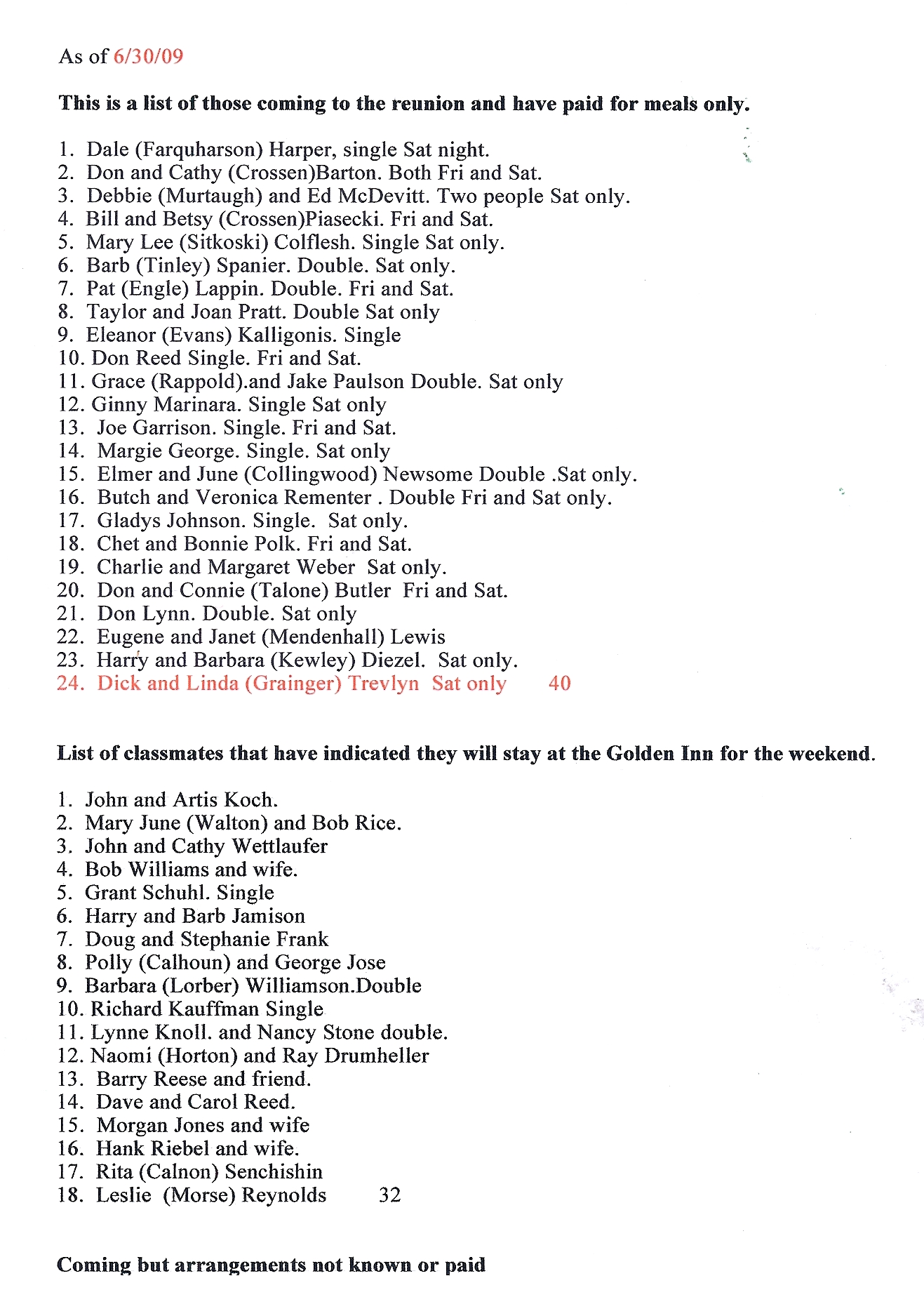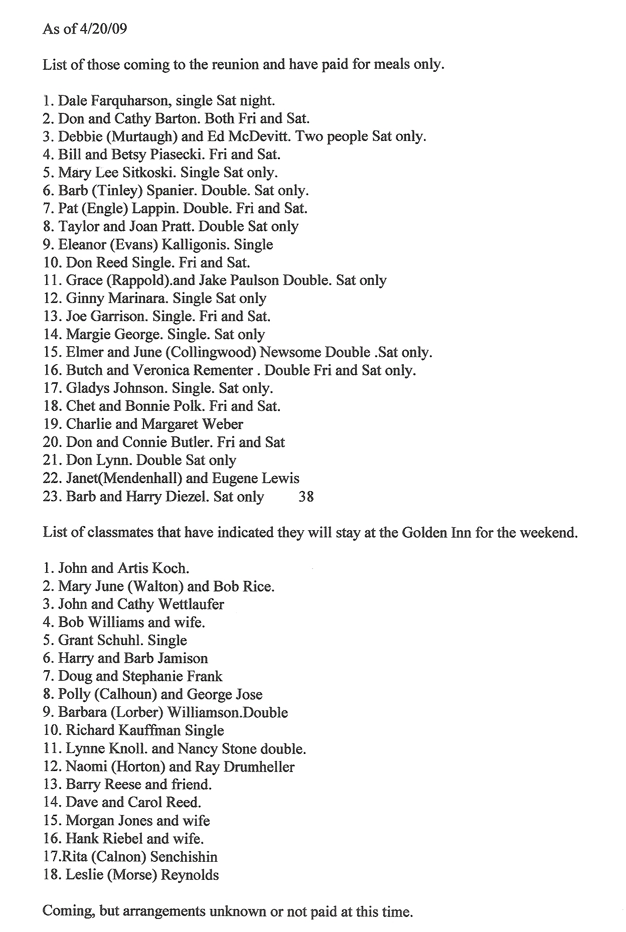 Total coming to the reunion, 75 for today